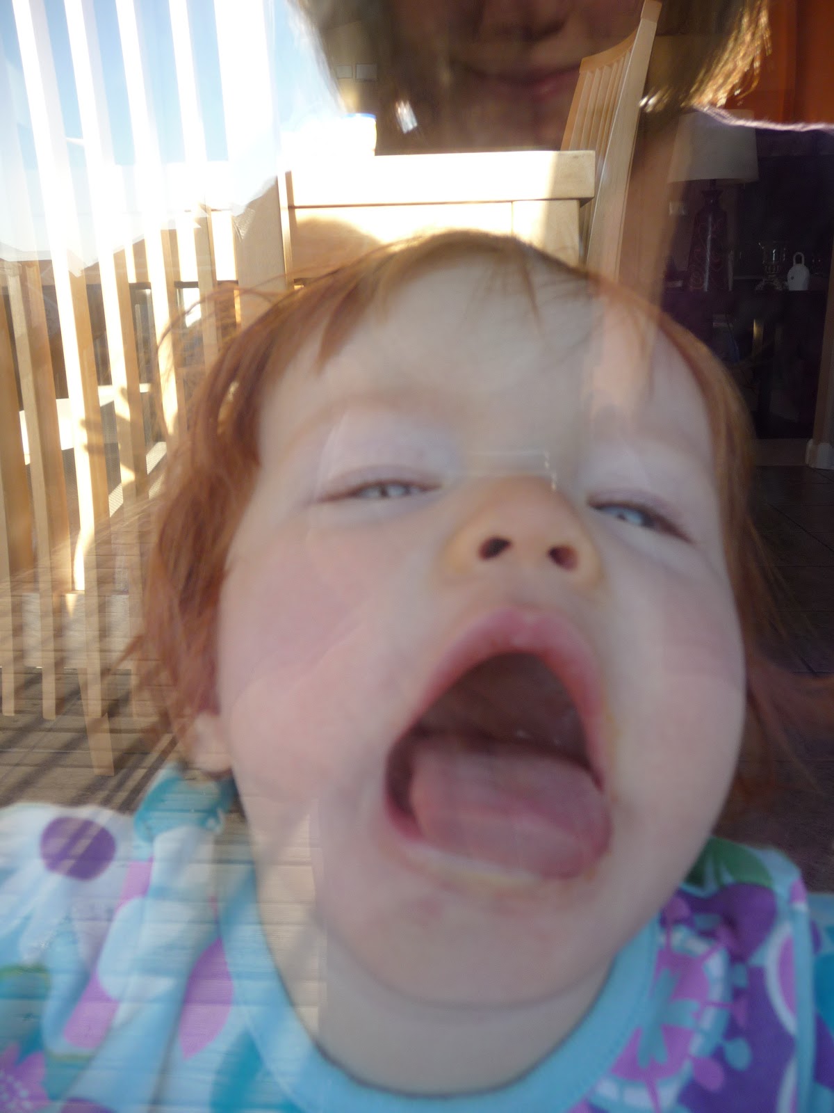 Miss Traci was over to watch Cora while I did some dissertation work. She helped keep Cora in one place while I took her picture and got her to smile for me. :)